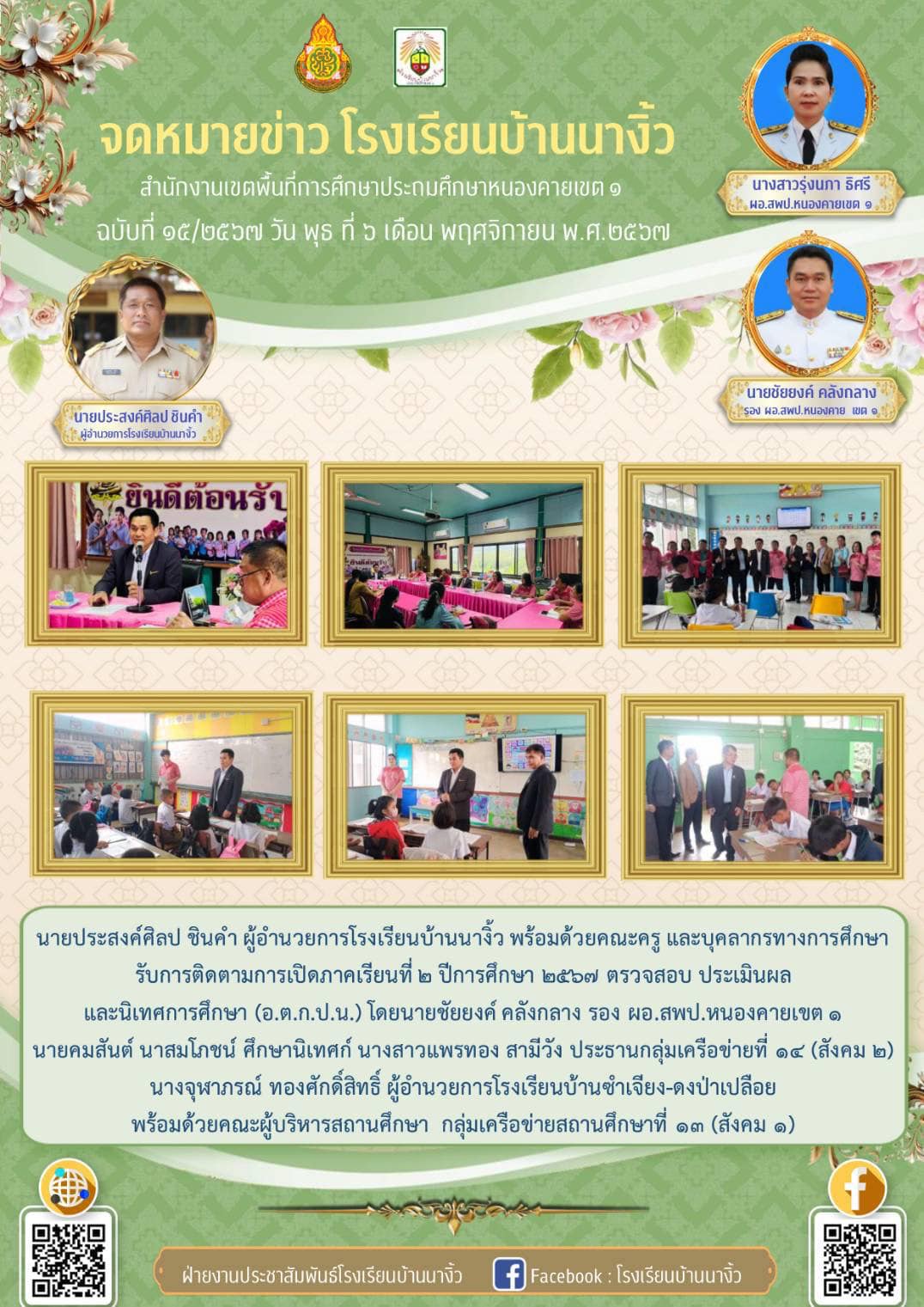 รับการติดตามการเปิดภาคเรียนที่ 2 ปีการศึกษา 2567 ตรวจสอบ ประเมินผล
